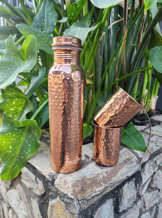 Mirror Finish Dimple Copper Bottle and Cup Gift Set