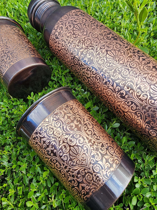 Mirror Finish Embossed Copper Bottle (900 ml)