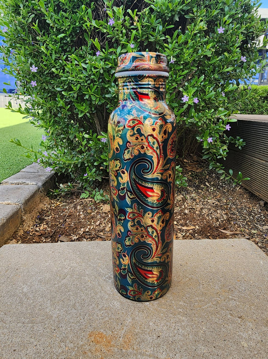 Paisley Printed Copper Bottle (900 ml)