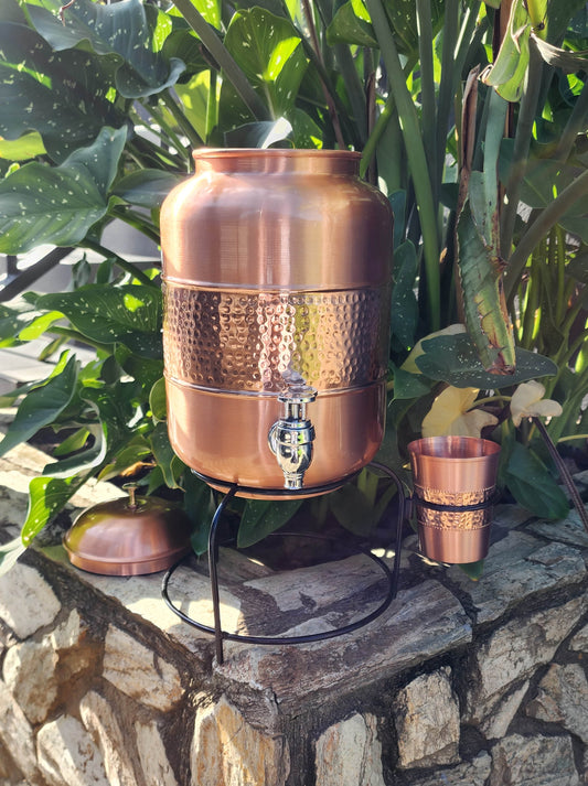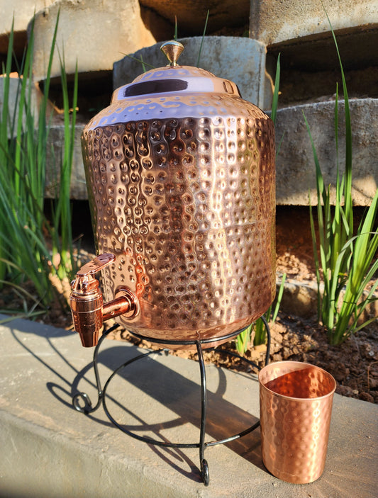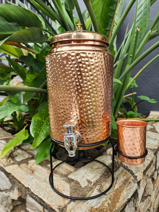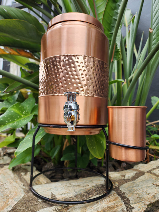 Dimple Copper Water Dispenser with Cup and Stand (5L)